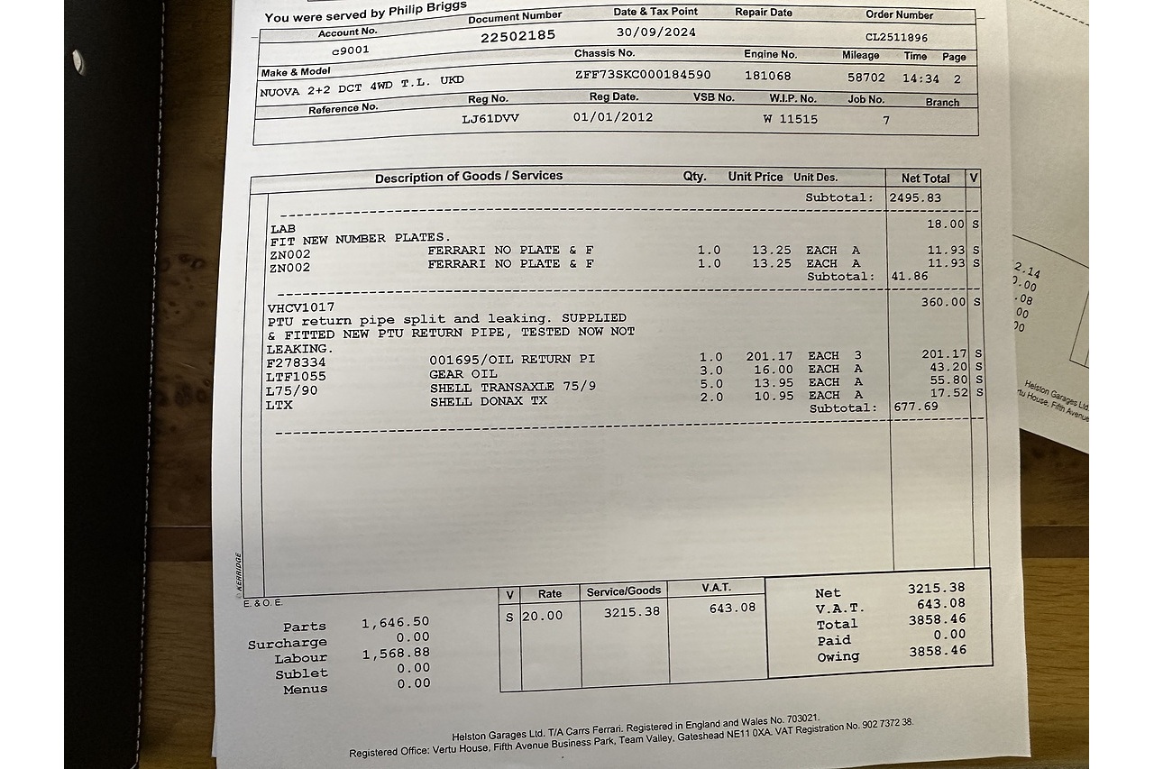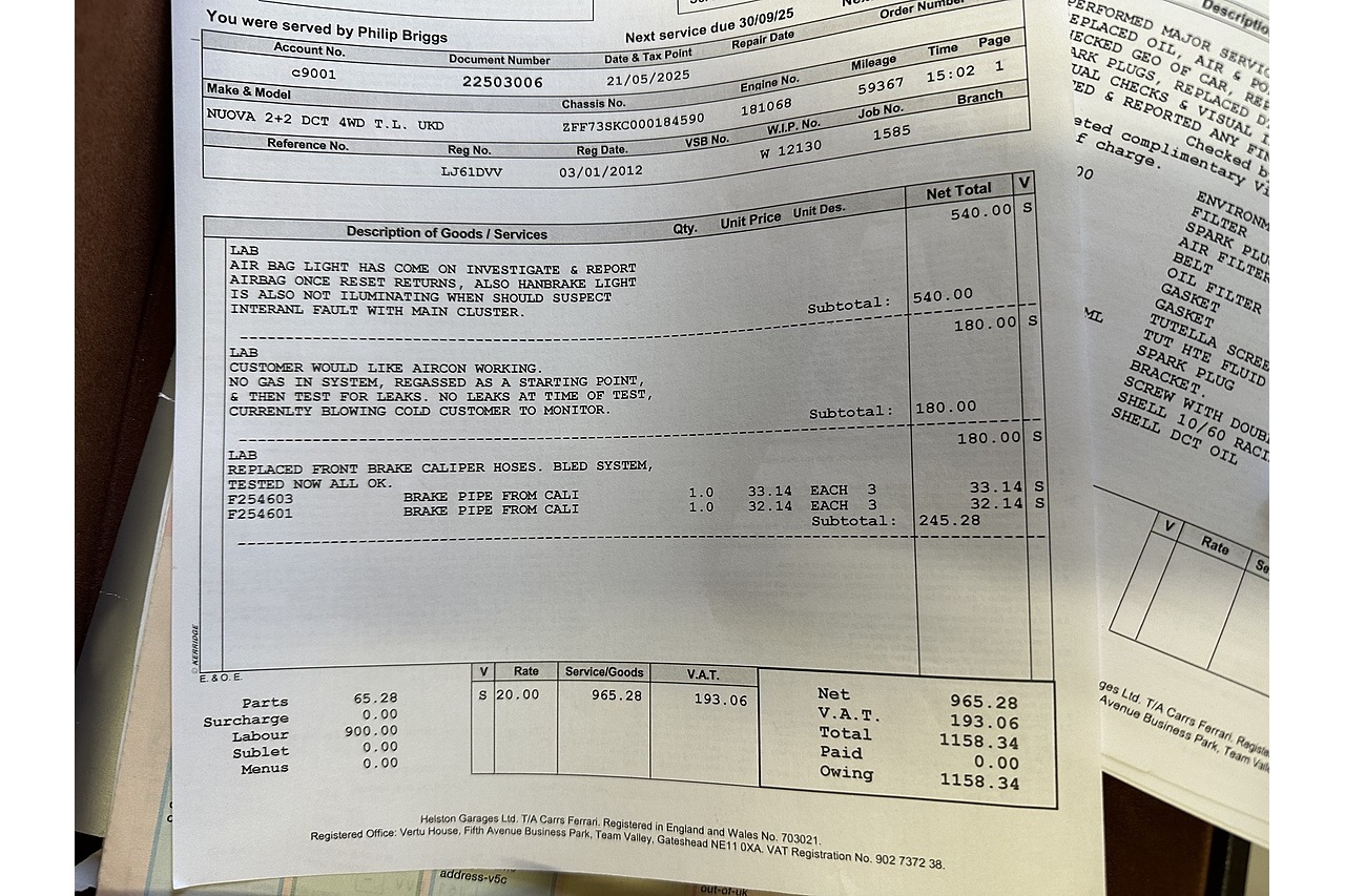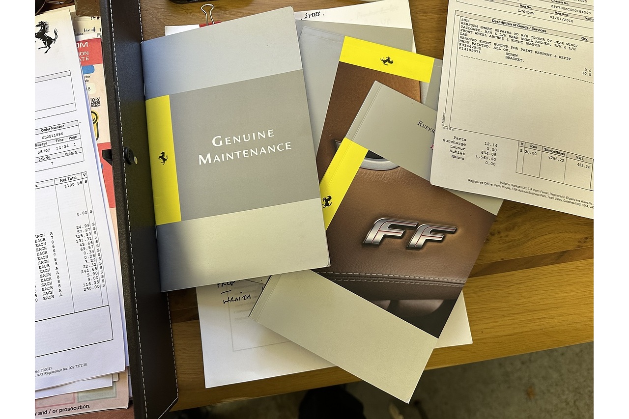 Great value 2012 FF with 59,600 miles in stunning Maranello red metallic with tan diamond quilted leather with red seat belts. lift suspension. Part PPF. Scuderia shields . Serviced October 2025 at Main dealer Call 07831 123911