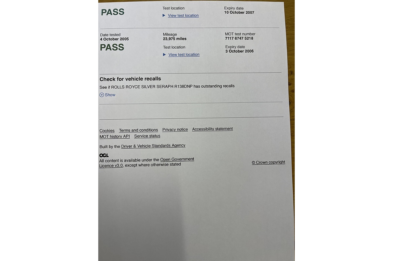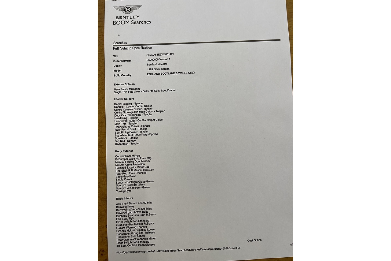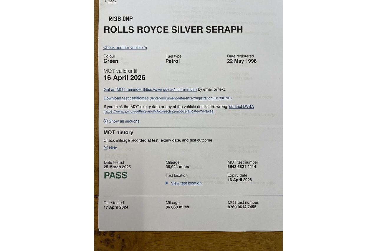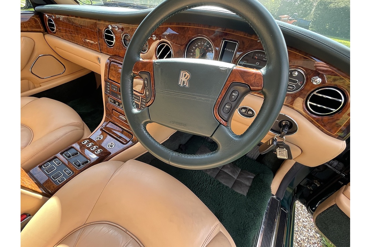 Stunning Very low mileage Silver Seraph .99 Model Mulsanne solid green with tan leather.Drives exceptional with nice history and low mileage .mot Jan 2027. new tyres ,batteries fresh check over just completed. picnic tables . Sheep skin rugs Nice low mileage garaged example . Call 07831 123911 for details
